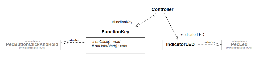 - Bibliotheksbaustein PecButtonClickAndHold in das Diagramm ziehen und mit der der Klasse FunctionKey verbinden