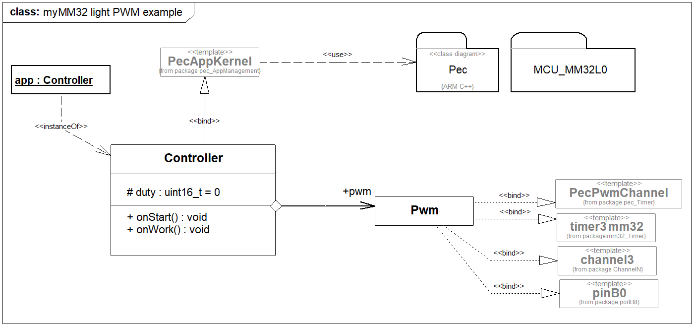 - Diagrammvorlage für PEC Applikation auswählen, laden und Treiberpaket für MM32L0 einfügen