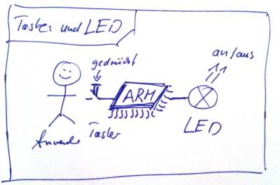 - die konkreten Pins A0 und B0 für den Taster und die LED