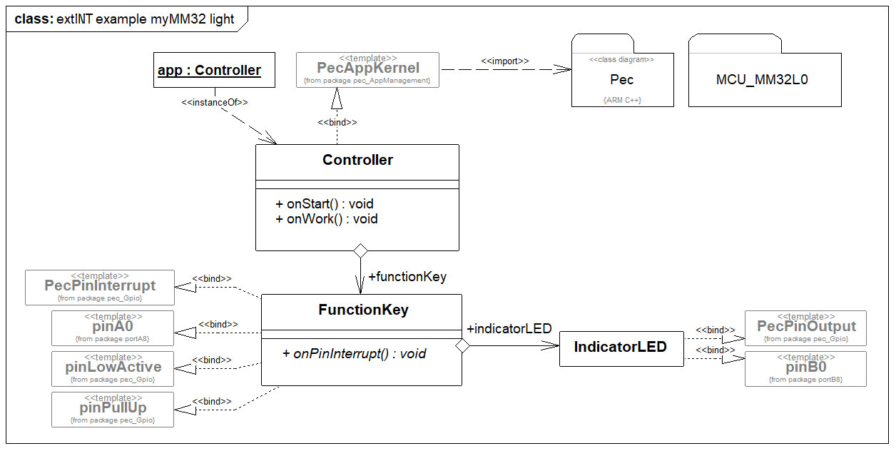 Der Controller hat eine Funktionstaste. Die Funktionstaste ist ein PecPinInterrupt. Die Funktionstaste hat eine IndicatorLED. Die IndicatorLED ist eine PecLed.