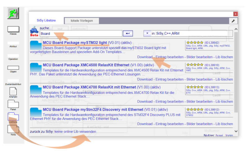 3. laden des richtigen Board Treiber-Pakets aus dem SiSy Online LibStore